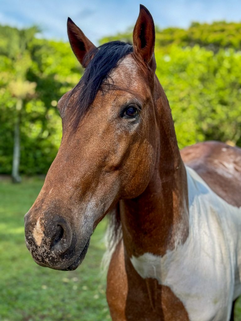 Likes: Guava, greeting every other horse (and sometimes cow or statue of horse) when out on trail.